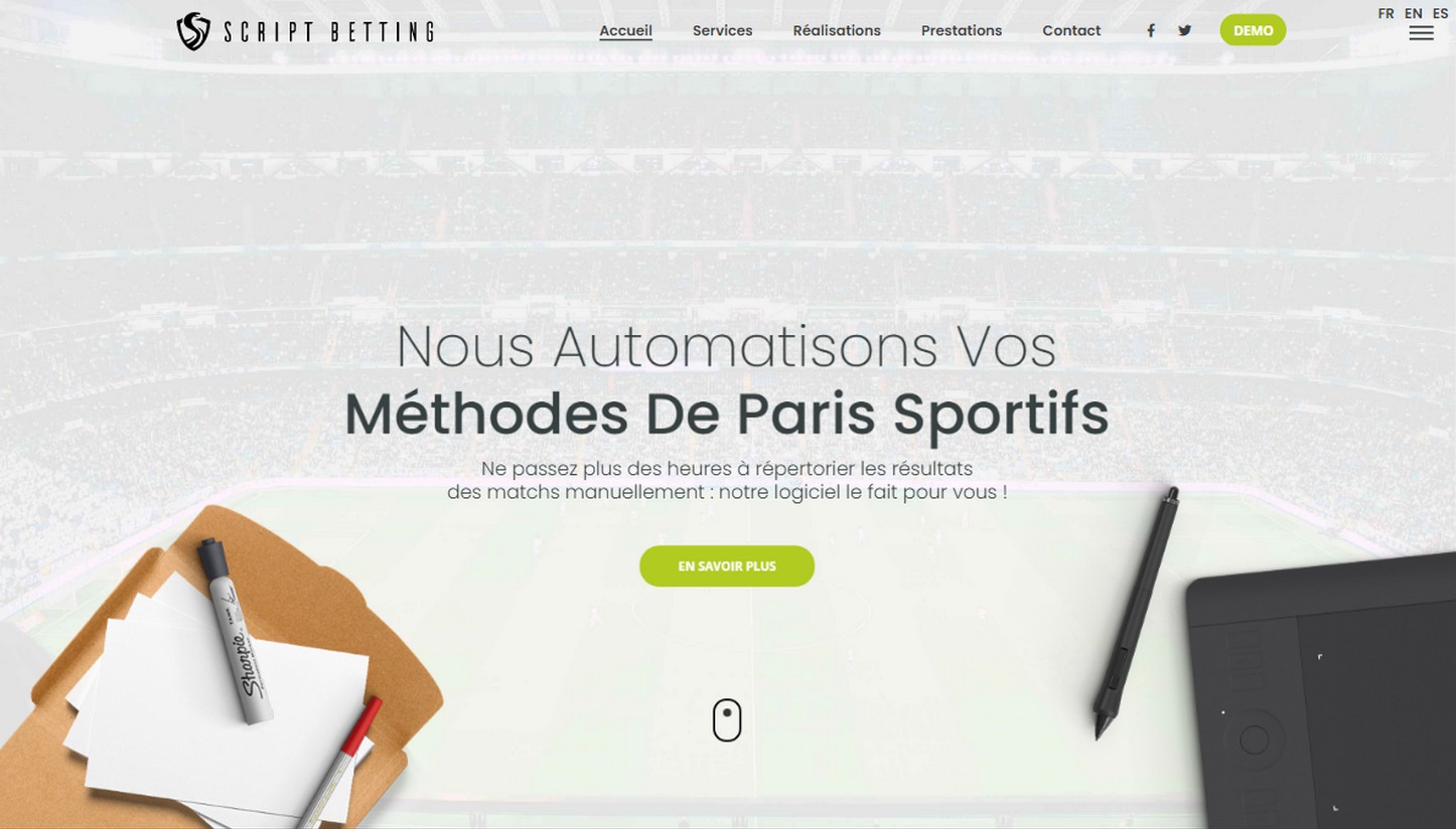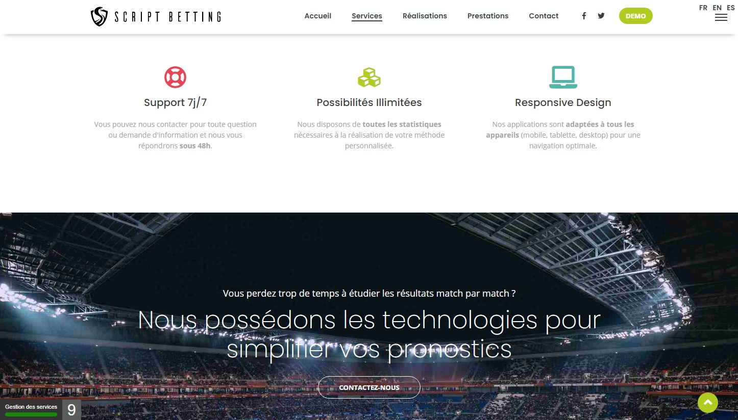 Réalisation d'un site de présentation d'une application dédiée aux parieurs sportifs, à l'interface épurée, animée et ergonomique.